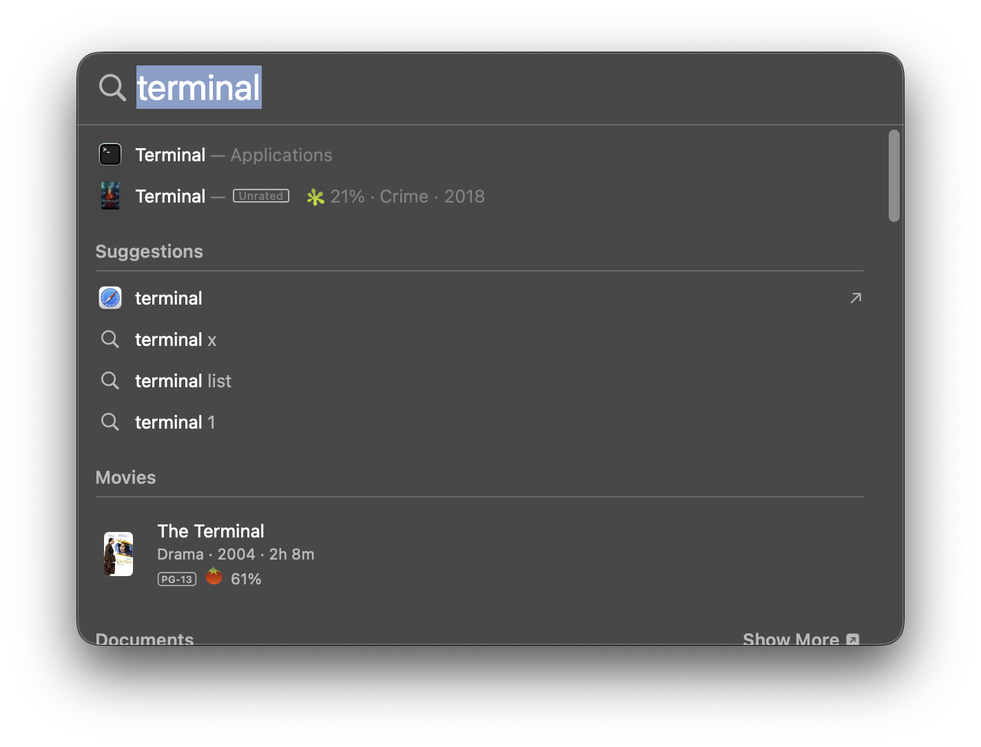 通过"聚焦搜索"(一般是 cmd+ 空格)打开"终端"