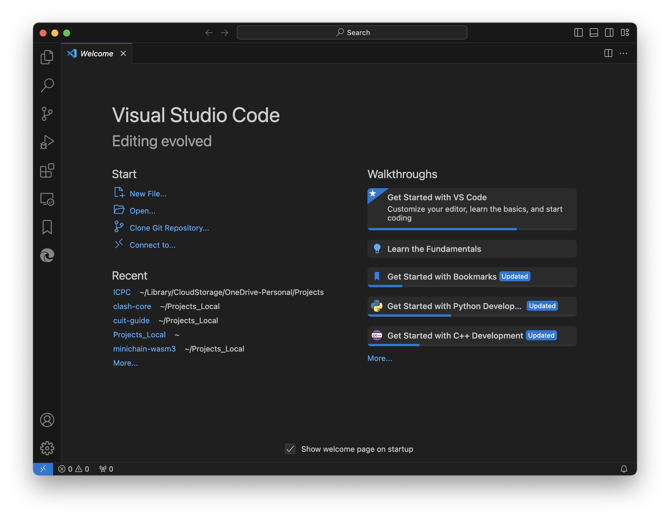 在启动台中打开 Visual Studio Code,看到如下界面,说明启动成功。