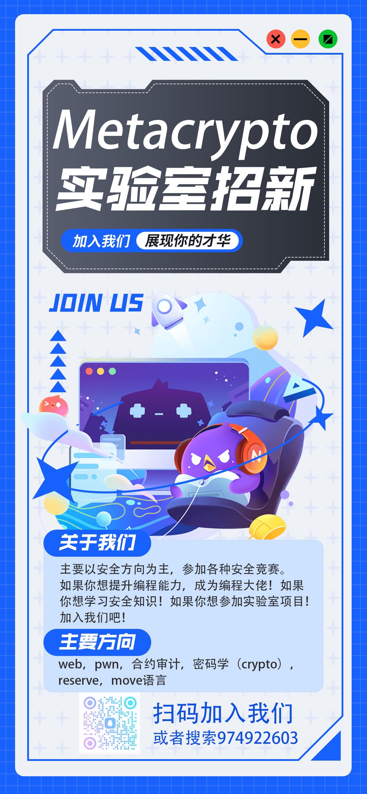 MetaCrypto 实验室成立于 2023.6,作为学校的新鲜血液,为学校的区块链,信息安全做出了巨大贡献。